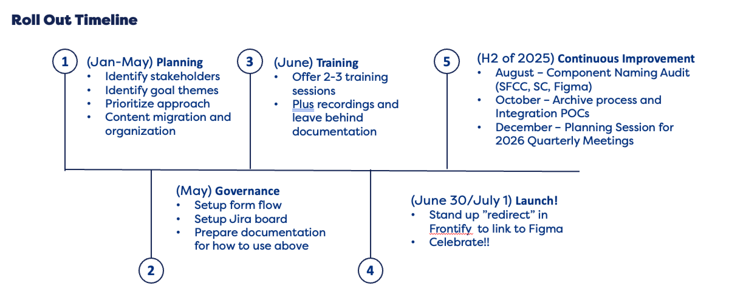 Phase 2 (2024–2025): Migrate documentation into Figma → sunset Frontify